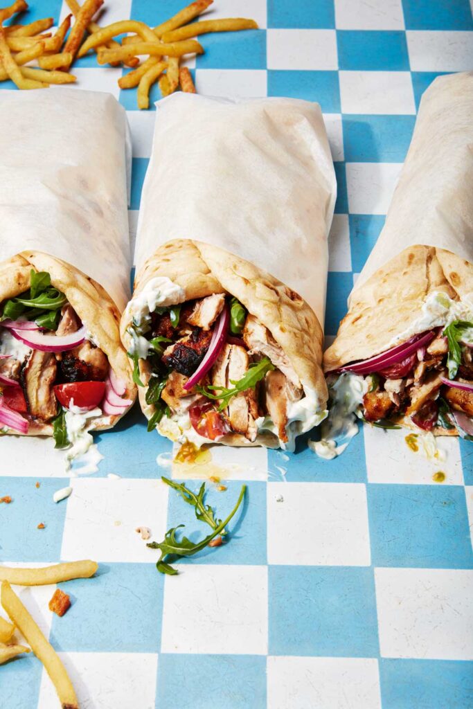 Recreate the flavours of Greek street food in your own home with this easy air fryer-friendly version of gyros, finished with a four-ingredient yoghurt dressing.