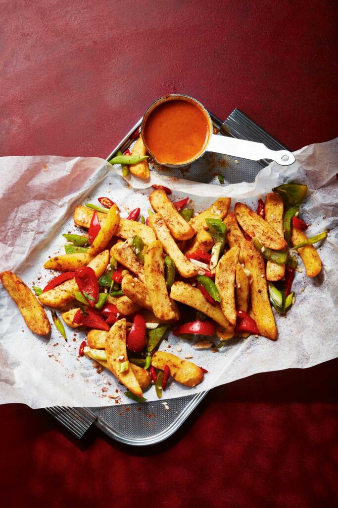 Coated in a lip-smacking spice mix and cooked to perfection, these homemade chips are a lighter – but no less delicious – version of a takeaway favourite.