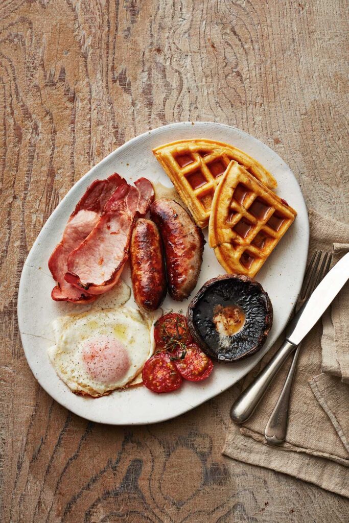 The ideal blend of sweet and savoury, this hearty brunch combines all the classic hallmarks of a fry-up with five-ingredient homemade waffles inspired by James’ American travels.
